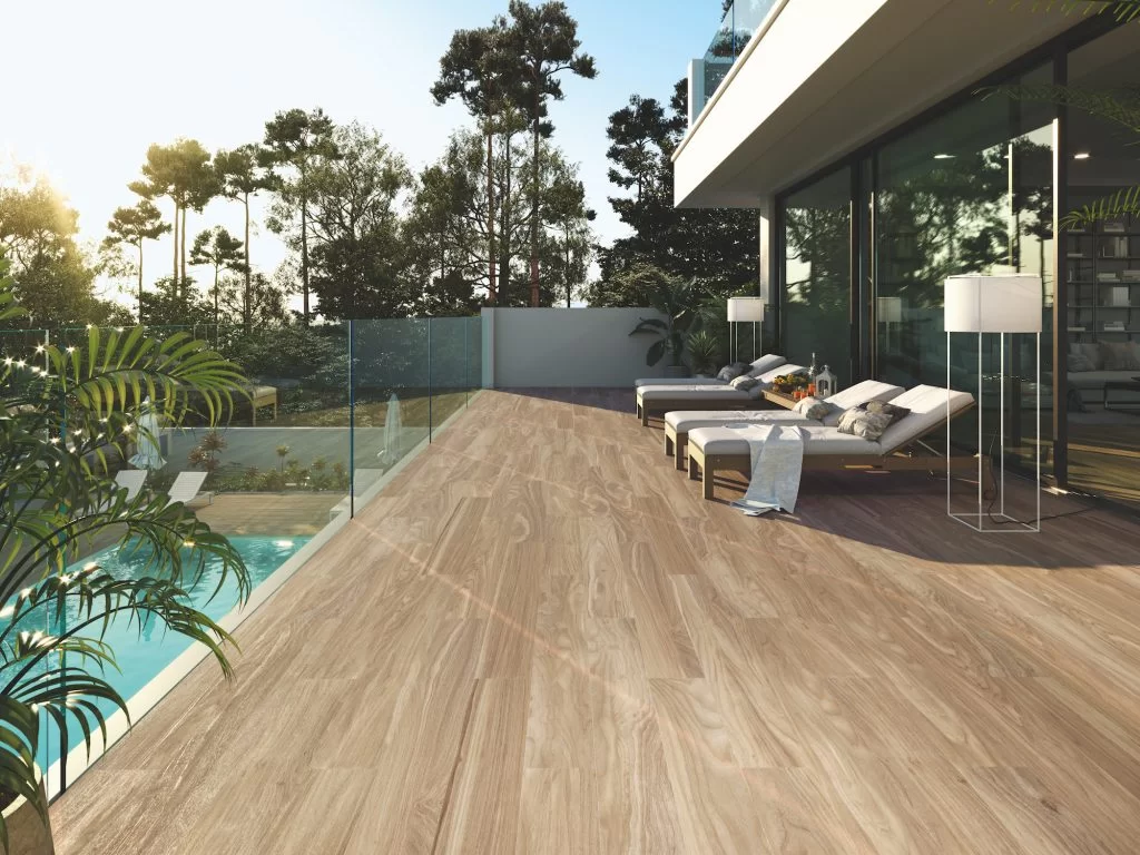 Los suelos de exterior son ideales para transformar espacios al aire libre como terrazas, patios, áreas de piscina y jardines. Su gran resistencia a la humedad, altas temperaturas y cambios térmicos los convierte en una opción confiable para ambientes exteriores, garantizando su durabilidad a largo plazo.